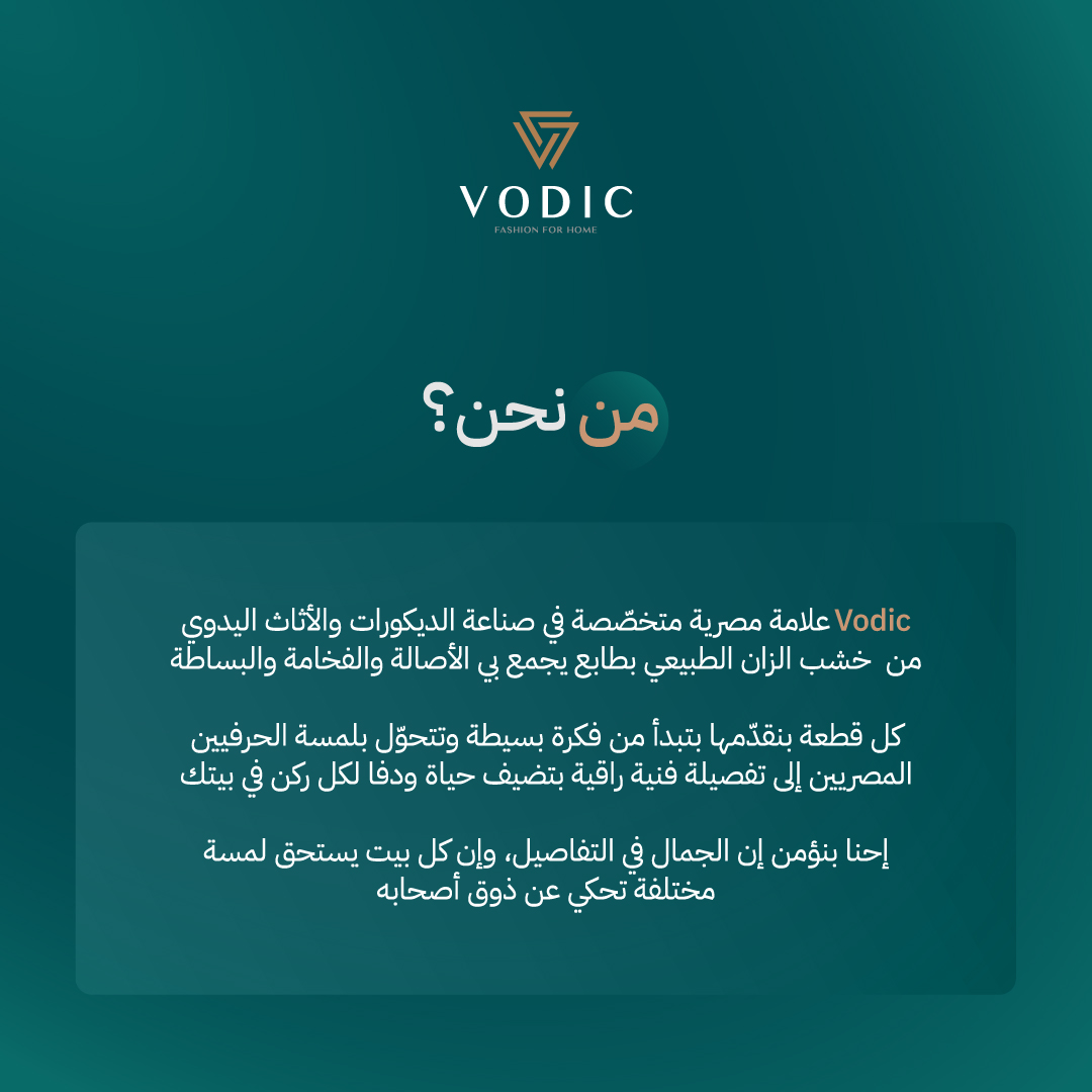 إحنا في VODIC بنقدم لك أفضل المنتجات المصرية، وكل قطعة تحمل شغف وحرفية ايادى مصرية.